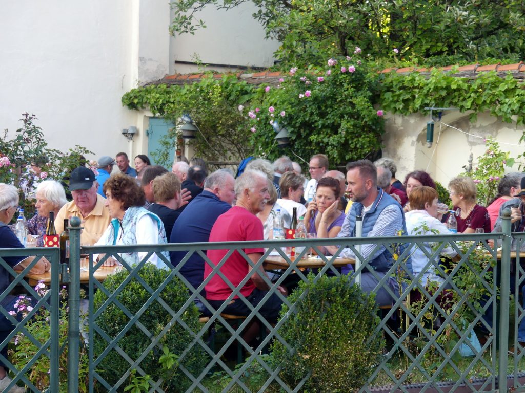 Und im Sommer geht es in den Garten. Bei schönem Wetter bauen die Weinerer im Schneiderinnengarten, unmittelbar dem Rathaus gegenüber gelegen, Tische und Bänke auf. Zur traditionellen Bewirtung kommt dann häufig noch Musik.
